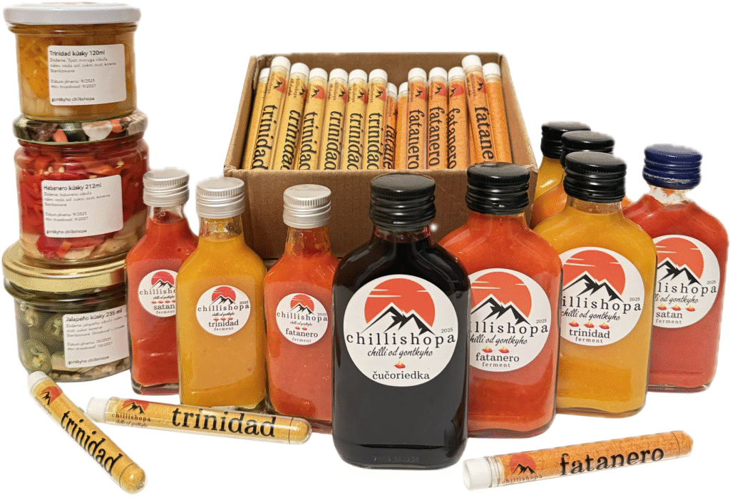 Všetko čo tu nájdeš, sú moje domáce výrobky. Papričky mi učarovali pred ôsmimi rokmi. Chilli pestujem v relatívne rozumnom množstve v najlesnatejšom okrese Slovenska – Gelnica, v domácich podmienkach popri práci, športe a cestovaní. Hnojím len bio prírodnými, minerálnymi alebo svojpomocne vyrobenými hnojivami (cafe, škrupiny, žihľava, banány…). Chilli pestujem a spracuvávam pre radosť. Táto výmena mojich hotových produktov za dobrovoľnú podporu projektu mi umožňuje šíriť radosť medzi ľudí, obľubujúcich pálivé a schopných oceniť tradičnú domácu prácu.